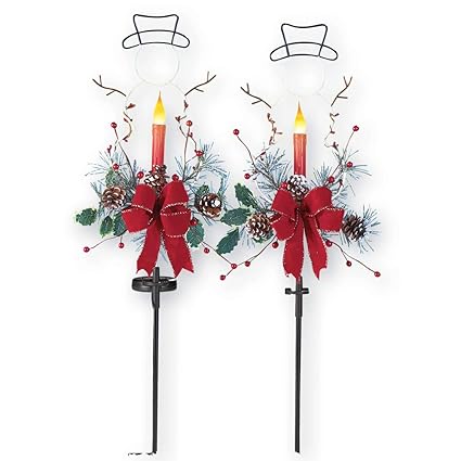 Maggift 32 Inches Solar Christmas Decorations Outdoor Led Solar Powered Candle Xmas Pathway Lights Metal Garden Stakes Lawn Yard Ornament Set Of 2