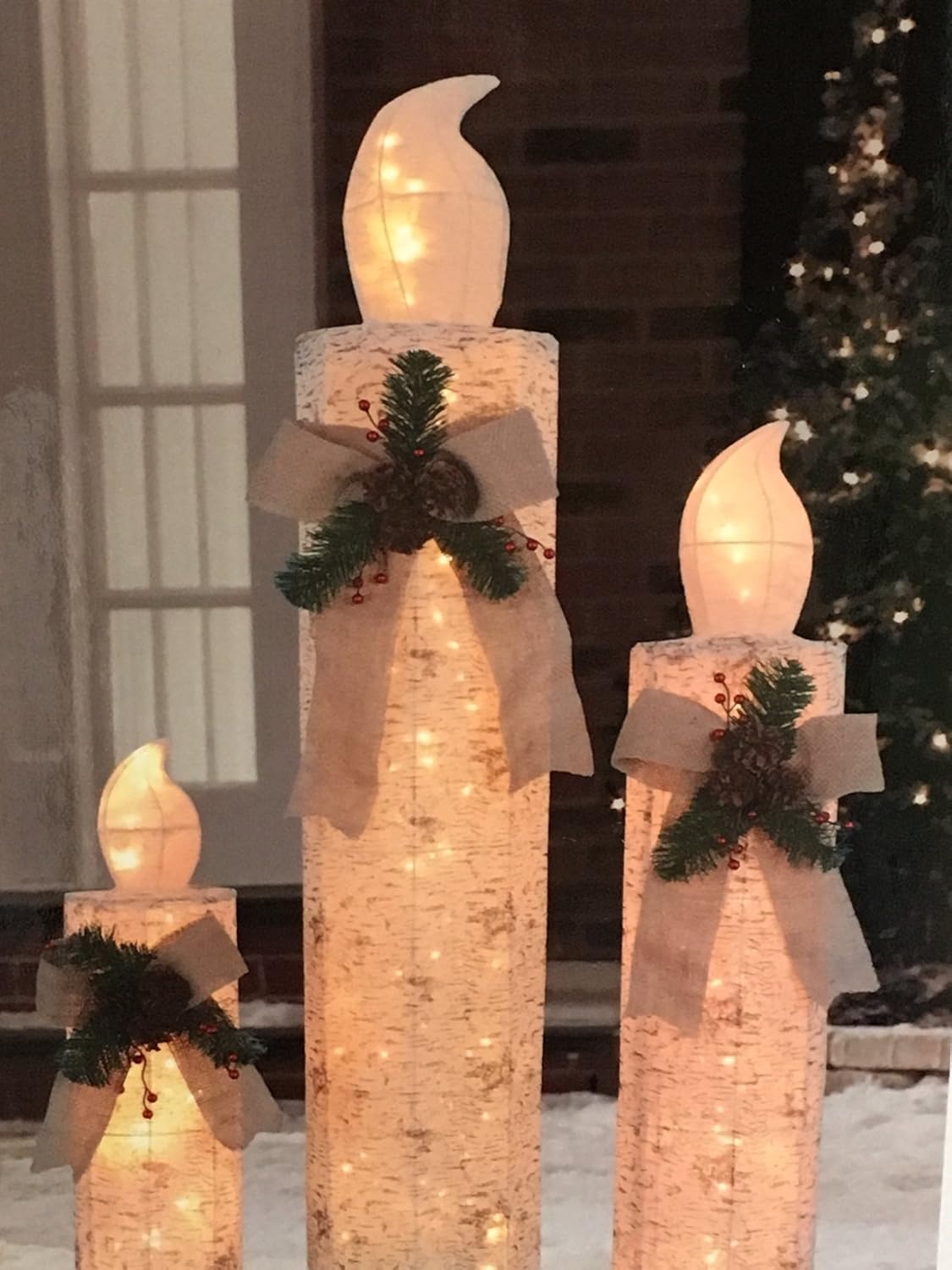 3pc Pre Lit Fabric Christmas Candles Outdoor Christmas Decor Yard Art