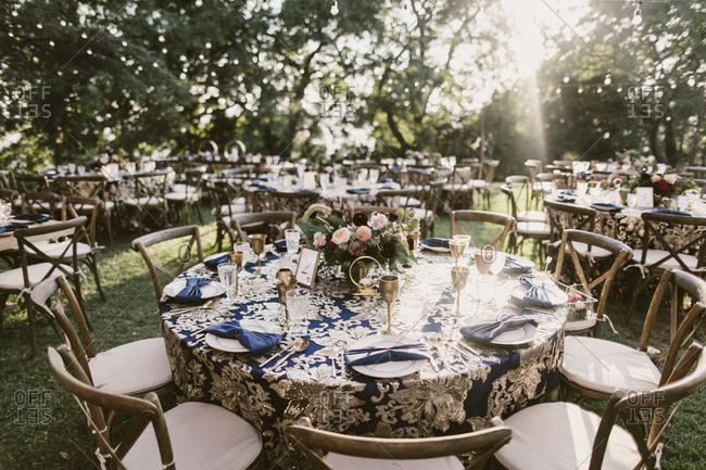 Gold Tables At An Outdoor Party Stock Photo Offset